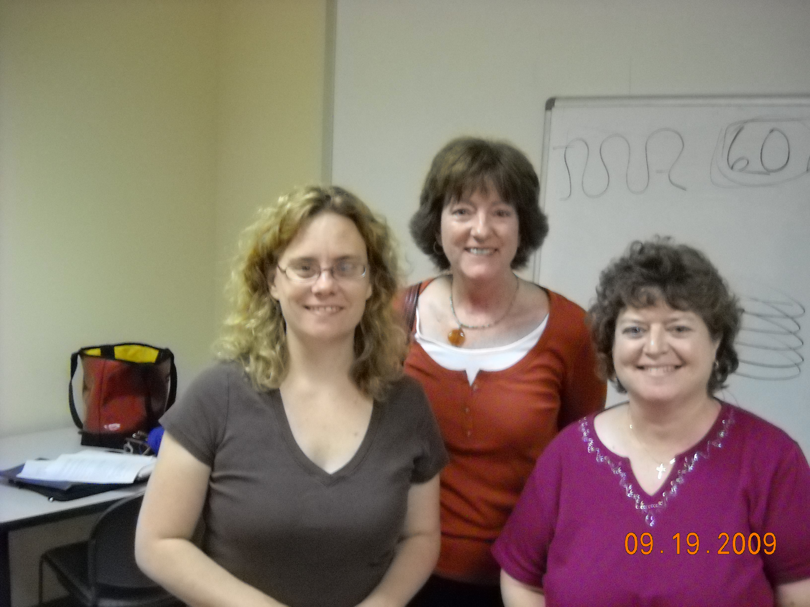 My friend and I had the wonderful opportunity to take a sock knitting class with the very funny Yarn Harlot herself Stephanie Pearl- McPhee. She really knows her knitting stuff and is a fun teacher. You should watch her knit, her fingers are lightning fast! Here’s a pic of Stephanie (on your left), my friend Grace and I with her at the end of class, (She called us the paparazzi).