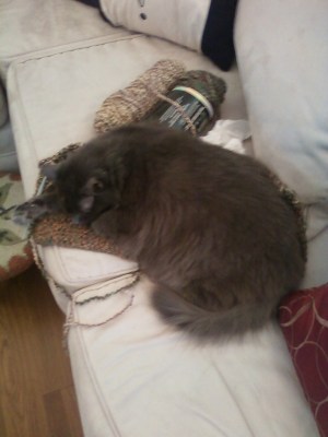 The second picture is of Romie covering the unfinished kneading cloth so you really can’t see it……as you can tell I wasn’t very far along and she’s a large cat.