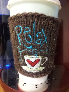I am loving my “relax” coffee cozy! Actually, both of them. You did a wonderful job and it is a good reminder each morning to take time and breathe. Thanks, Marilyn. You’re the greatest!