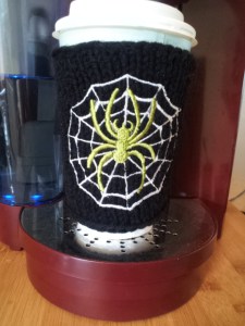 Today is day 8 {31 Days of Cup Cozies} – Spiderweb and Spider. I am very afraid of spiders, I know they are small little creatures and do good stuff for the garden but none the less I’m afraid of them. I once got a spider bite on the top of my hand that started to fester and grow. Talk to the doctor about it but he said he could not do anything about it. The bite was very painful and started to spread to other areas of my hand. Finally, I tried peroxide every few hours it worked and I continued to heal. So it’s no wonder that I’m afraid of them.